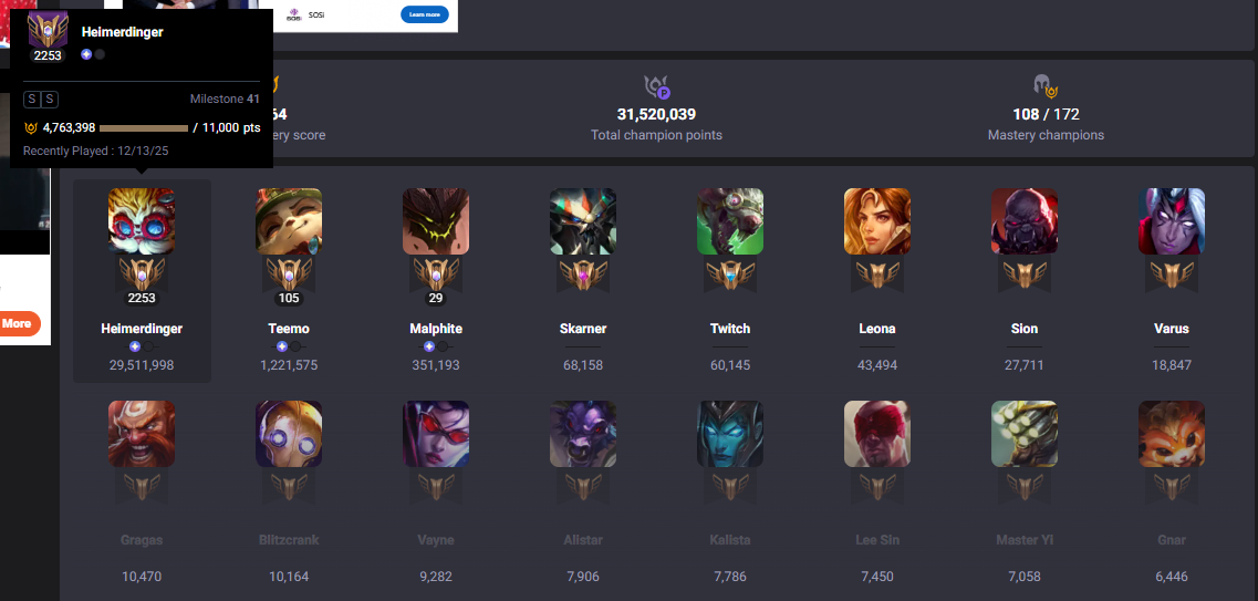 - Champion mastery